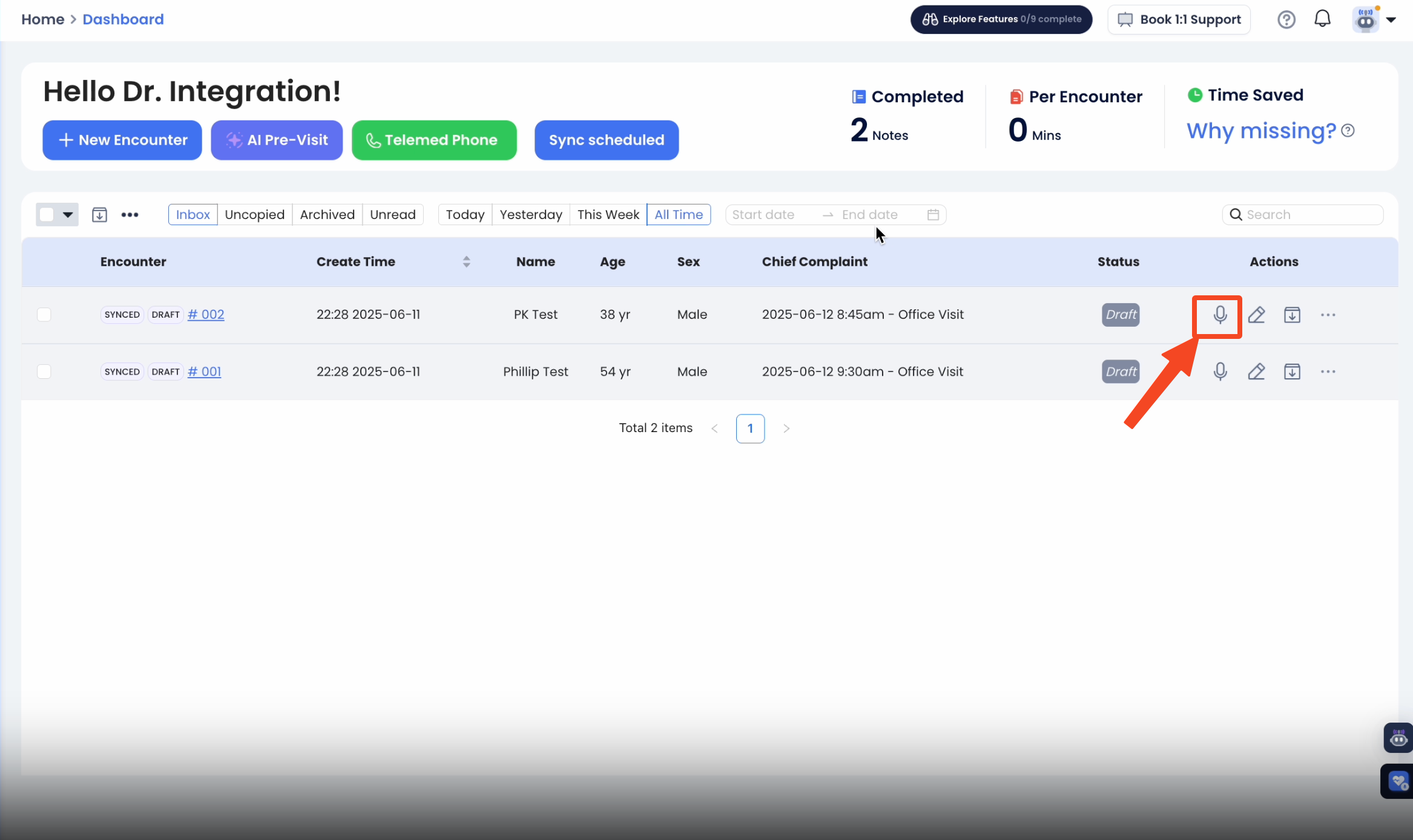 3. Start Recording - Click on the mic button to easily start your recording with the patient.