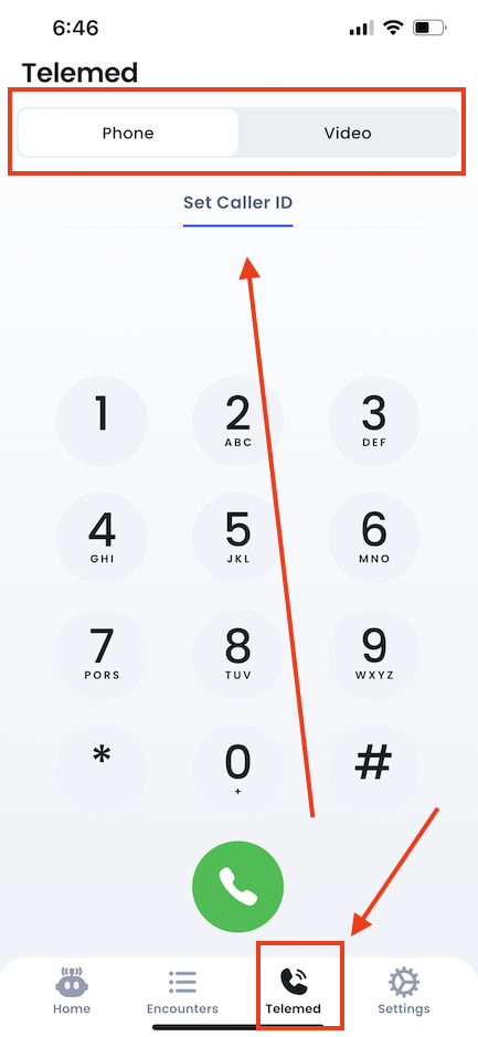 • Log into the mobile app and tap the  "Telemed" tab at the bottom of the screen.