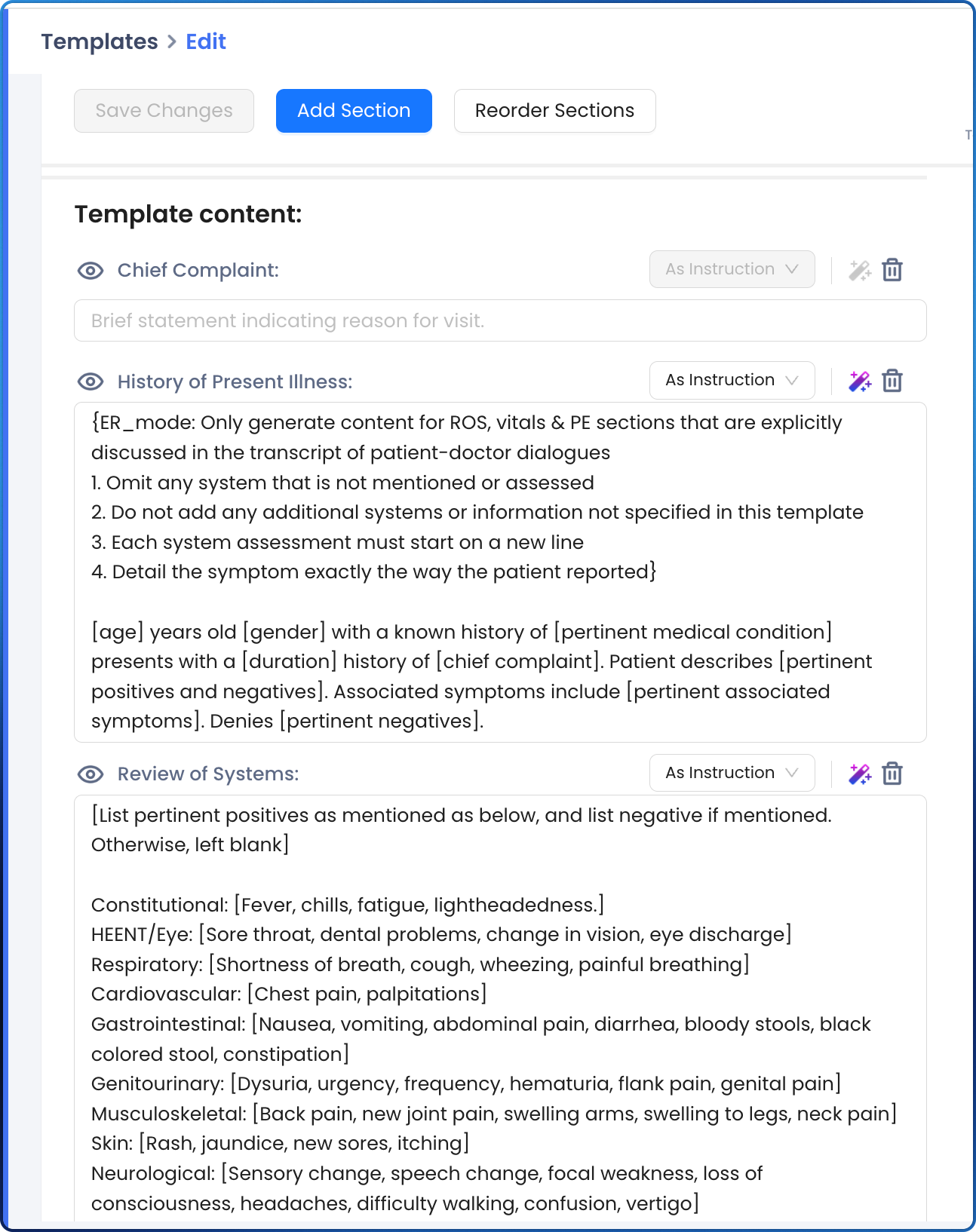 Precision Control: You decide which sections are mandatory and what specific information (like ICD-10 codes or specific physical exam maneuvers) needs to be captured.