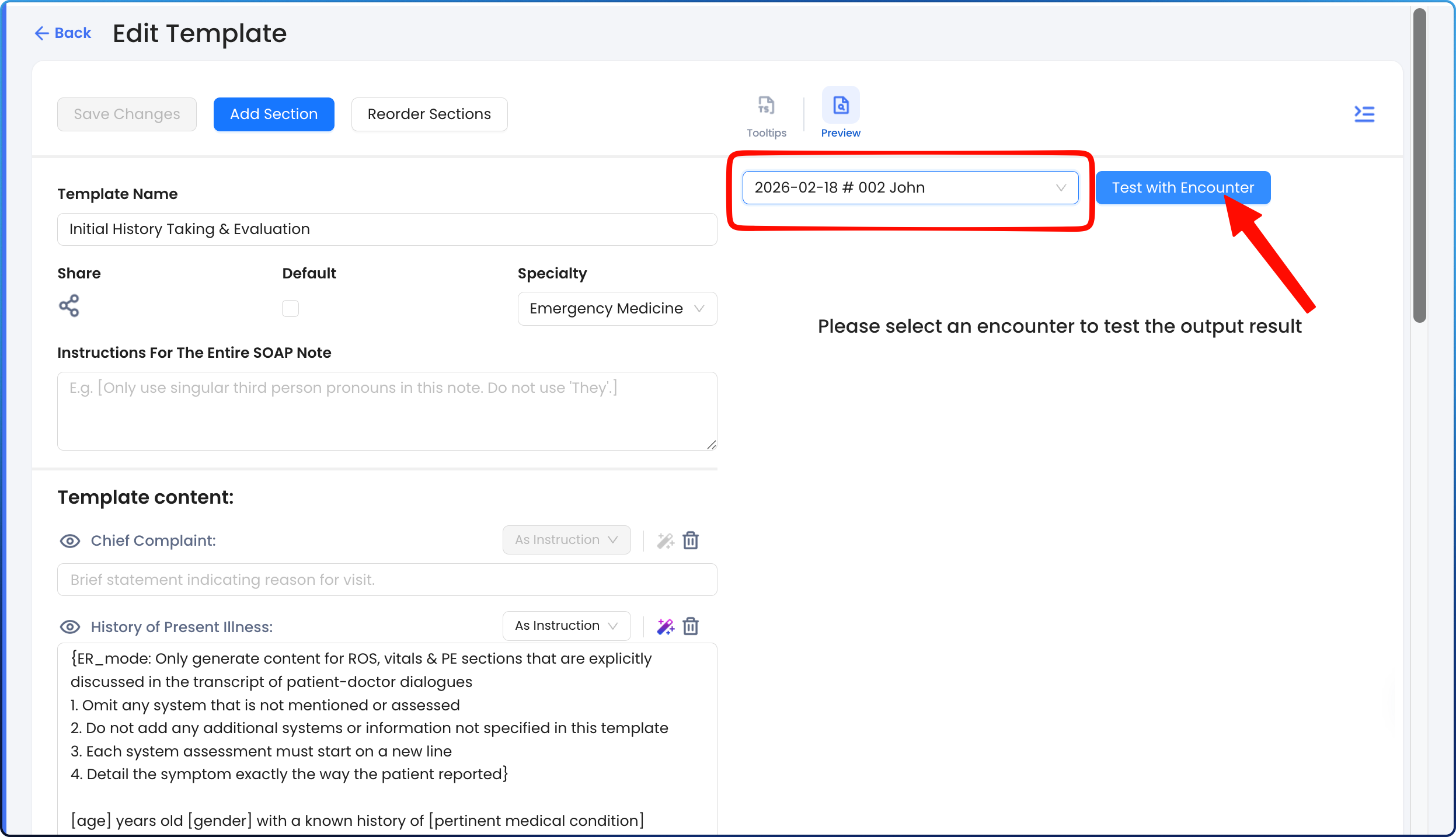7. Test with Encounter - One of Template Pro’s standout features is the ability to test templates directly with real encounter notes: